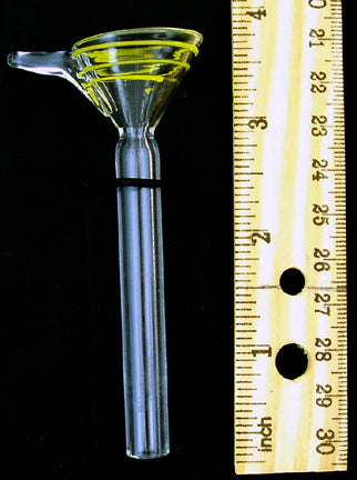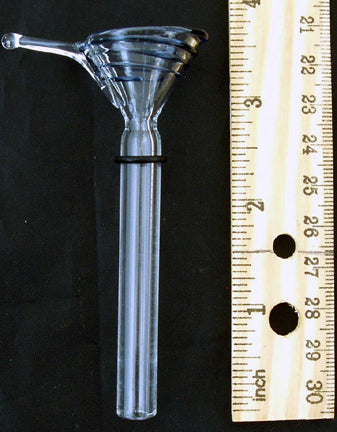 2ND QUALITY. Replacement 9mil color wrapped clear glass pull stem/slide with side handle. Rubber "O" ring included. Fits into 9.5mil inside diameter standard size glass downstems. 3.5" long. Size measured from top to bottom. 2.5" below rubber "O" ring. Various colors. Sent at random. Handmade so length may vary slightly. Economical water pipe accessory. Please see our Glass Accessories Measuring Guide.